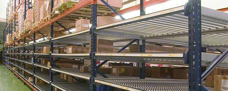 Carton Flow racking is formed using tracks of small wheels, configured into lanes and fitted into beds that are supported using either pallet racking or Longspan frame components.