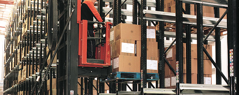 Drive-in Pallet Racking, also known as Drive-through pallet racking is designed to maximise your warehouse space by creating a high density storage area. Drive-in pallet racking can be designed up to a height of 11 metres. Pallets are placed on runners and forklift trucks physically enter the racking to deposit or retrieve pallets.