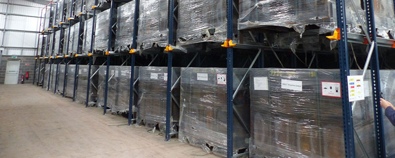 Drive-in pallet racking works on a first pallet in – last pallet out system, so stock selectivity is reduced but your warehouse’s overall storage capacity is greatly increased. It is ideally suited to warehouses where stock is received and despatched in bulk. Drive-in racking is also used in coldstore environments as the high storage density can considerably lower operating costs.