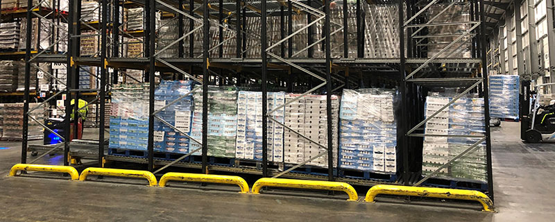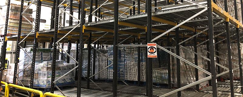 Pallet Live Storage also known as Gravity Flow Racking is suited to many industry sectors and applications as it provides vast amounts of storage with automatic stock rotation. It is an ideal system for perishable goods and other goods where FIFO (first in first out) stock rotation is critical. Pallet Live storage can also be used to effectively increase space utilisation in Goods In and Despatch marshalling.